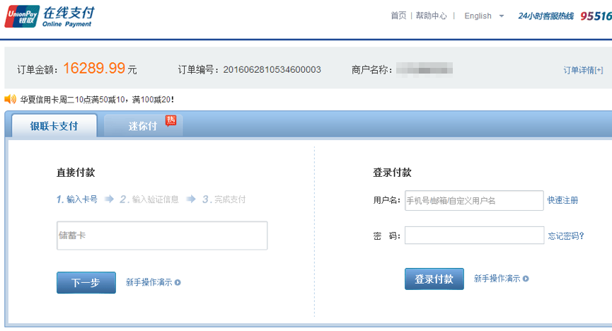 2、必须使用中国银联储蓄卡/借记卡。